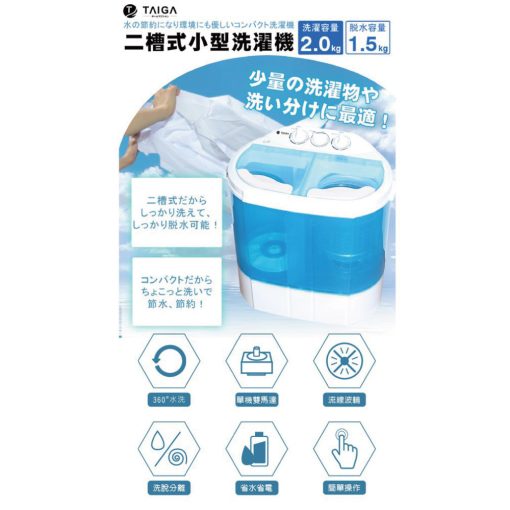 日本 TAIGA 迷你雙槽柔洗衣機 輕巧