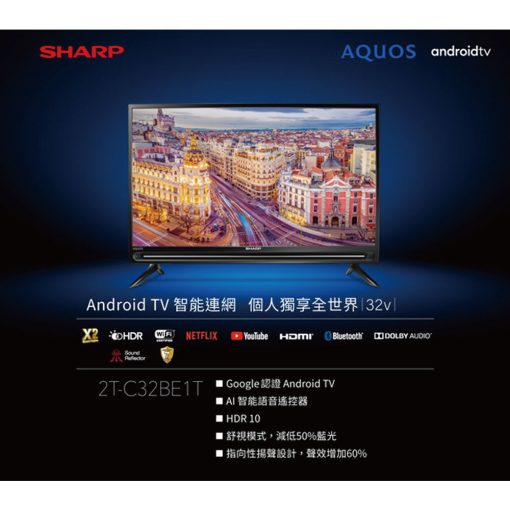 SHARP 夏普 32型Android 液晶顯示器 2T-C32BE1T
