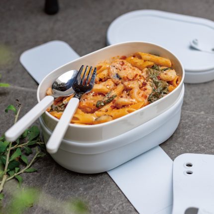 輕量一體成型陶瓷便當盒,好清洗不留異味;專利矽膠套結構搭配新升級束帶,有別於其他便當盒開蓋方式,輕鬆開蓋,湯汁不易溢漏,適用烤箱、電鍋與微波爐,好拿質感外型,料理更升級,陪伴您的每一餐!