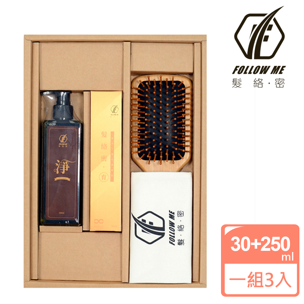 【哿長生醫】髮絡密養髮系列養髮套組禮盒A款-育30ml +淨250ml+氣墊梳