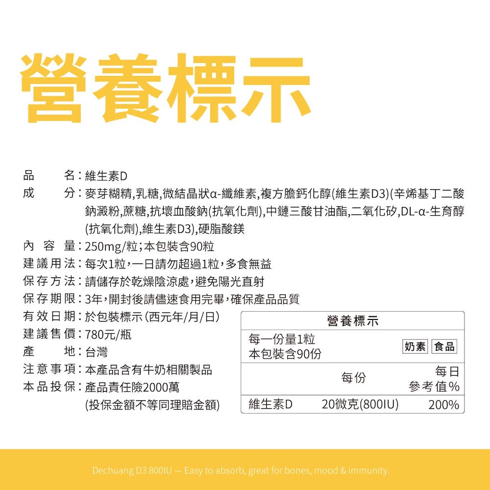 【德創生技】維生素D3 (有助維持骨骼、神經、肌肉健康) 數量