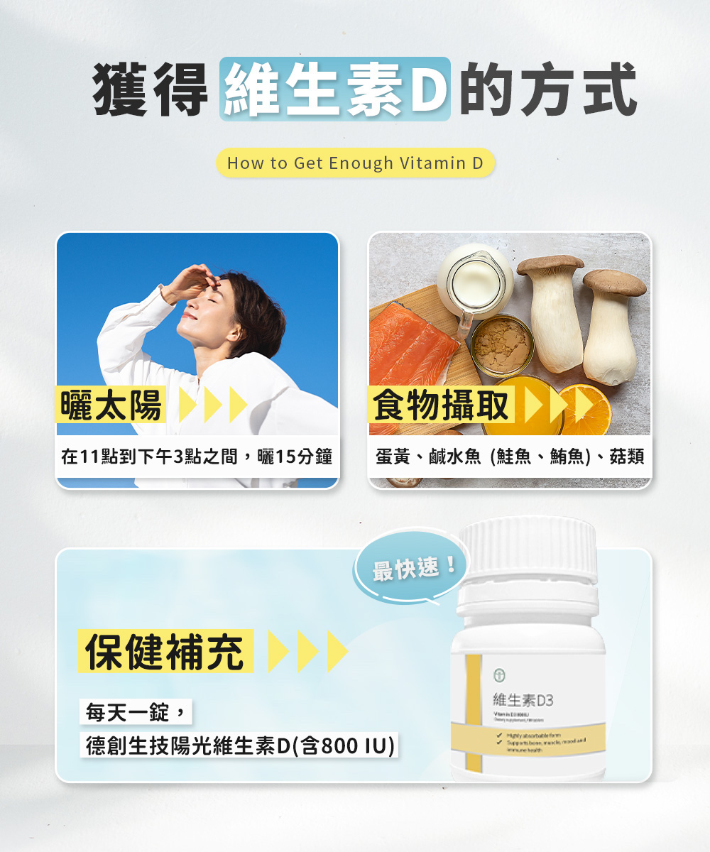 【德創生技】維生素D3 (有助維持骨骼、神經、肌肉健康)