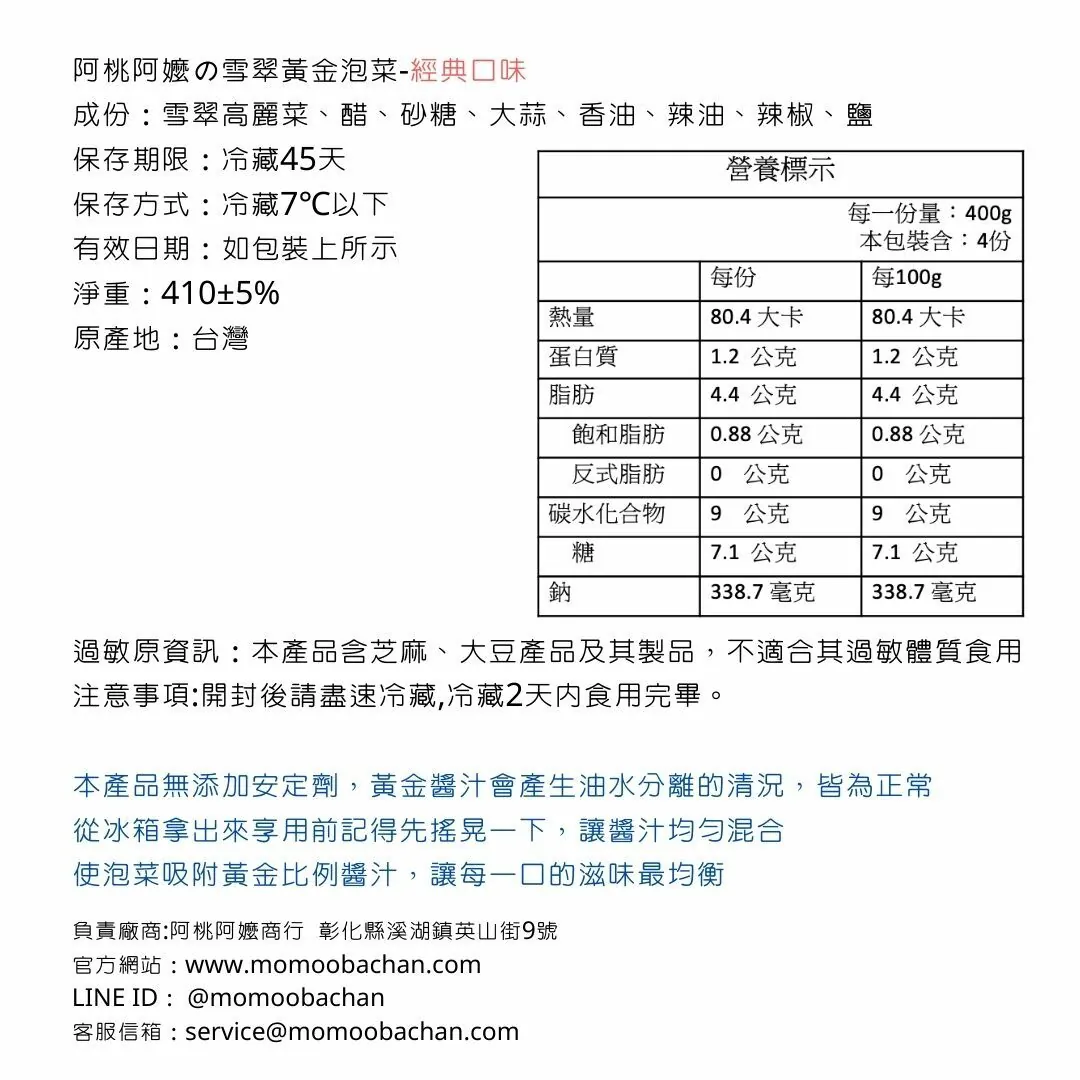 【阿桃阿嬤】雪翠黃金泡菜-經典口味