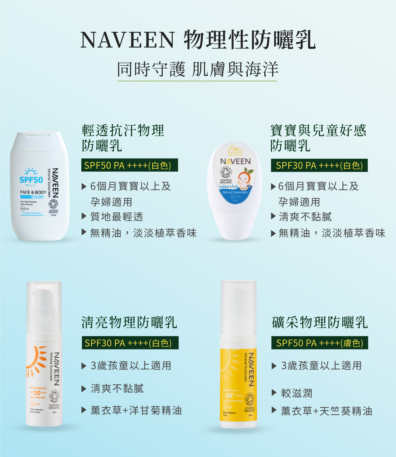 無添加花水、精油等香味成分,讓敏弱肌、母嬰更放心的物理防曬 75ml大容量 / 臉部、全身適用,6個月以上寶寶及孕婦適用 COSMOS有機驗證 / 100%天然來源成份