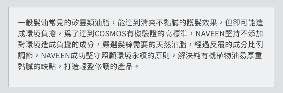 多重有機植物油,深層修護、滋養髮芯,提升頭髮抗拉強度和彈性